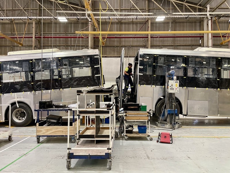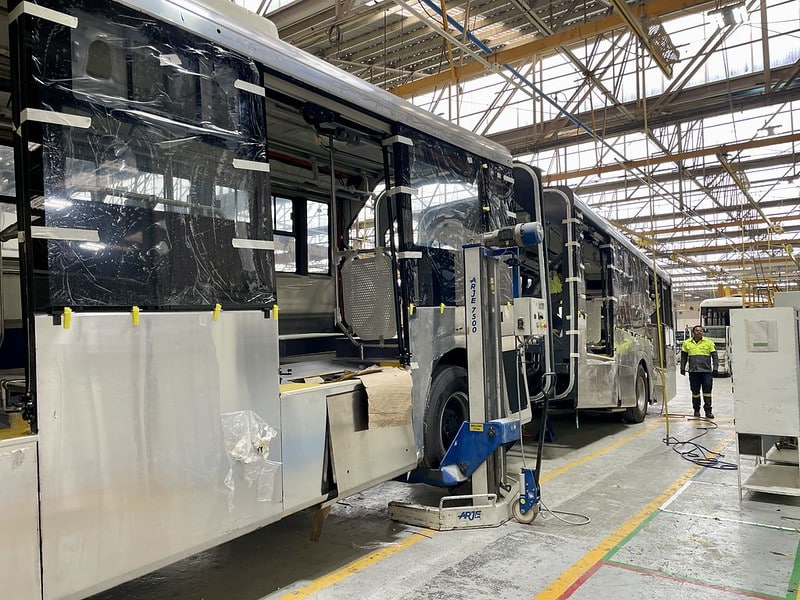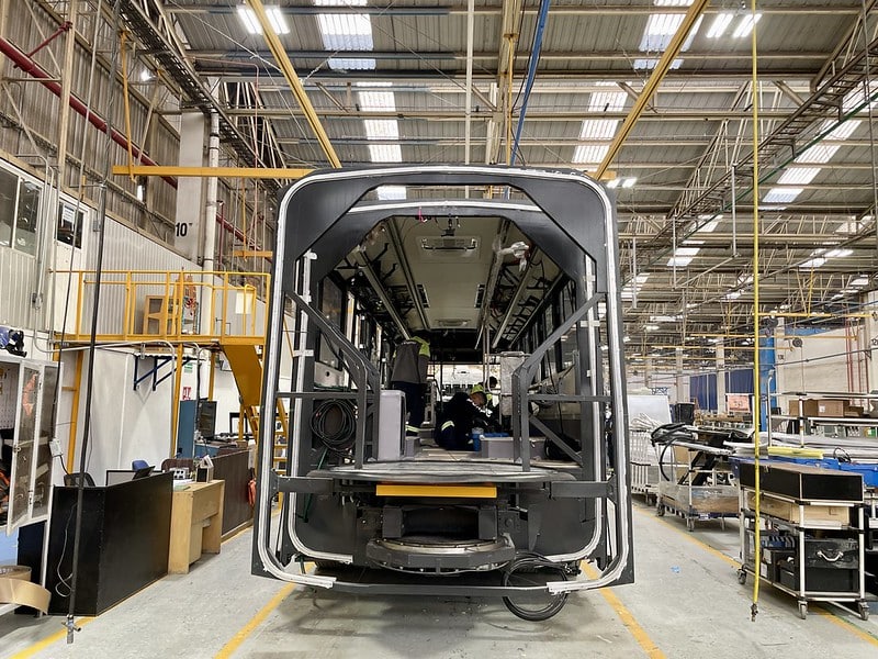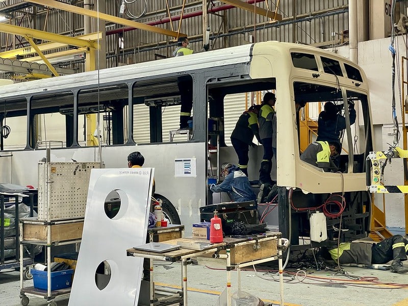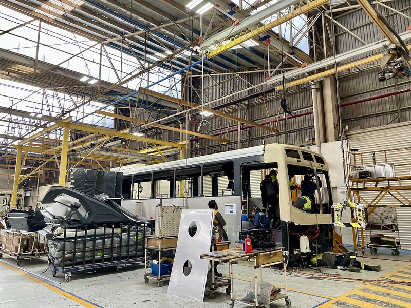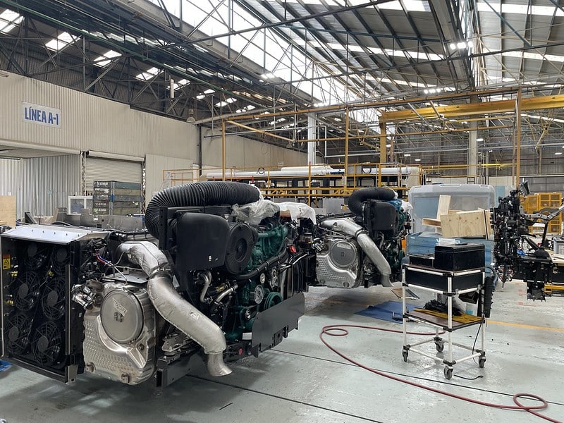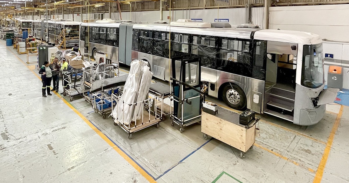 En la planta armadora Volvo en Tultitlán, Estado de México, se encuentran en proceso de ensamblaje los autobuses eléctricos que operarán en la carretera a Chapala.