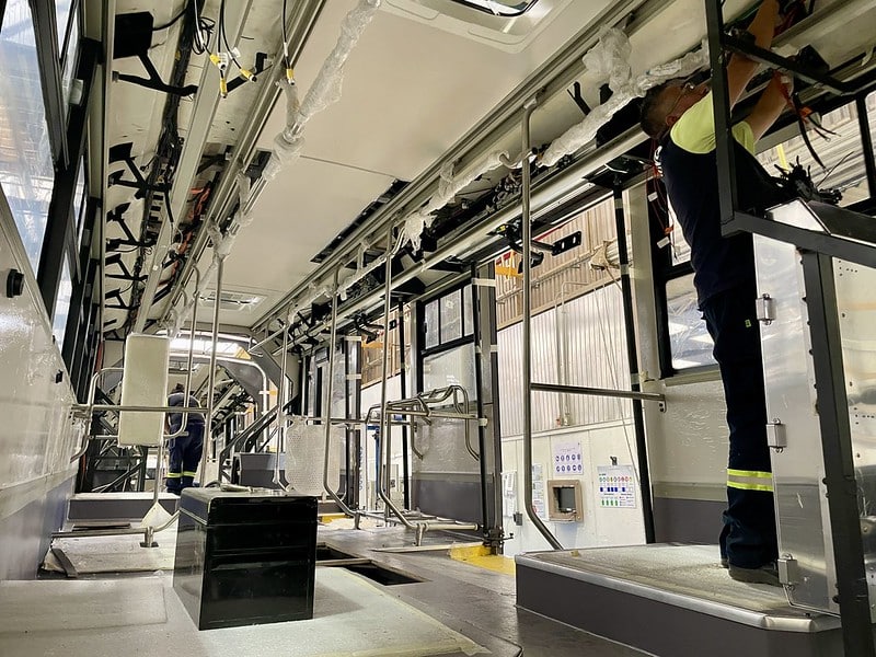 Durante el recorrido, los responsables del proyecto visitaron las áreas operativas de estructuras, así como las líneas de ensamble y pintura donde se fabrican las nuevas unidades. En su primera etapa, podrán movilizar hasta 25 mil personas al día.