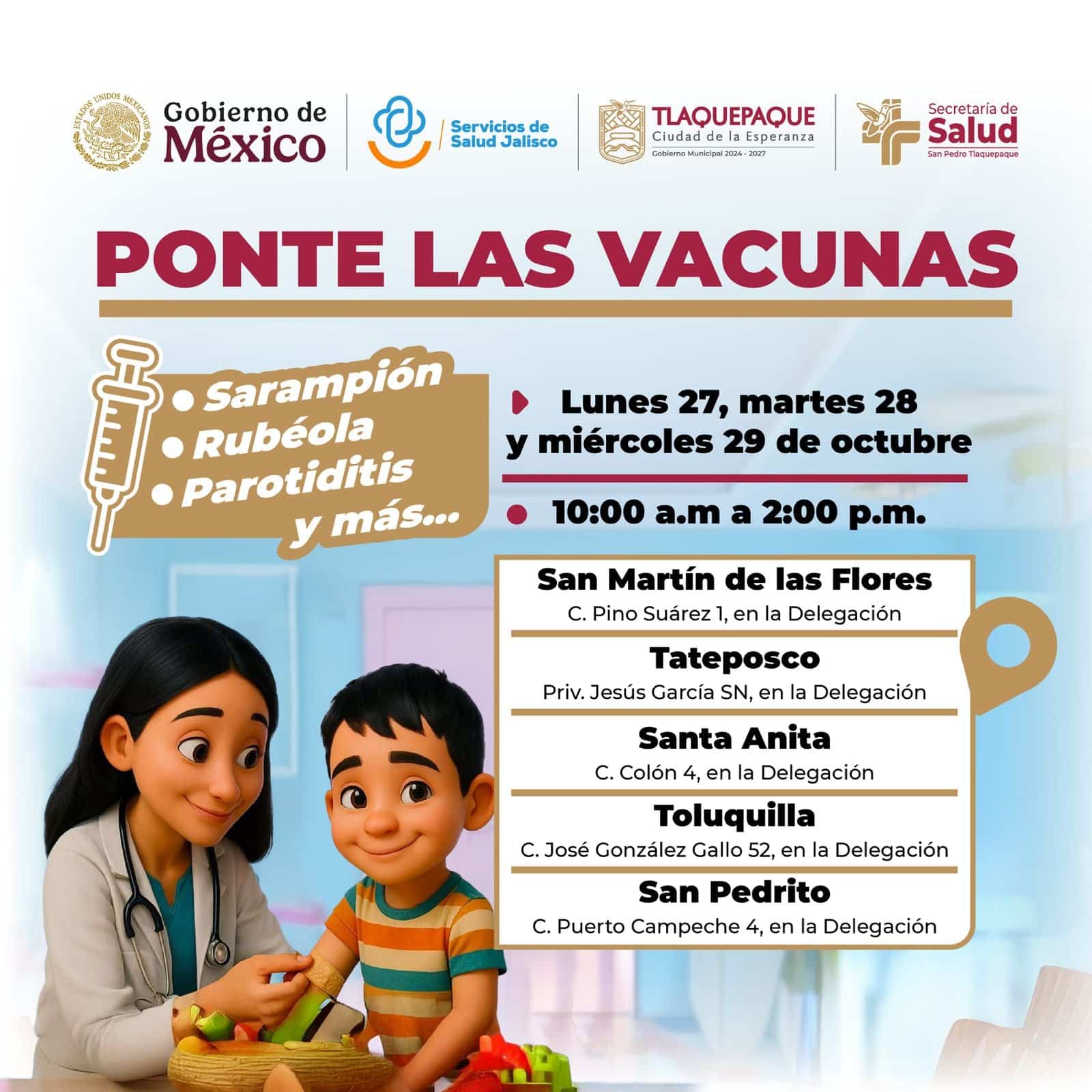 ANUNCIA TLAQUEPAQUE JORNADAS DE VACUNACIÓN ANTE BROTE DE SARAMPIÓN