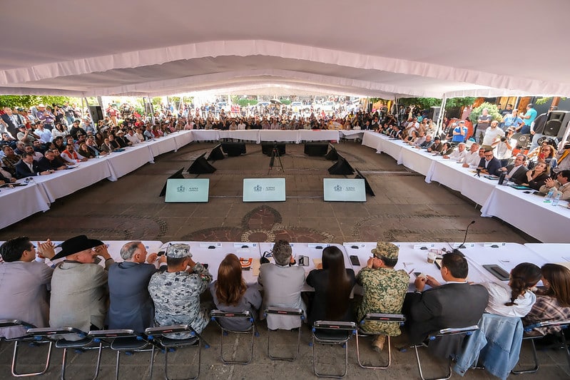 El anuncio se realizó durante una mesa interinstitucional celebrada en la plaza principal de este Pueblo Mágico, donde el mandatario subrayó que las acciones se implementarán con respeto a la autonomía municipal y bajo un esquema de coordinación permanente con autoridades locales y sectores sociales.
