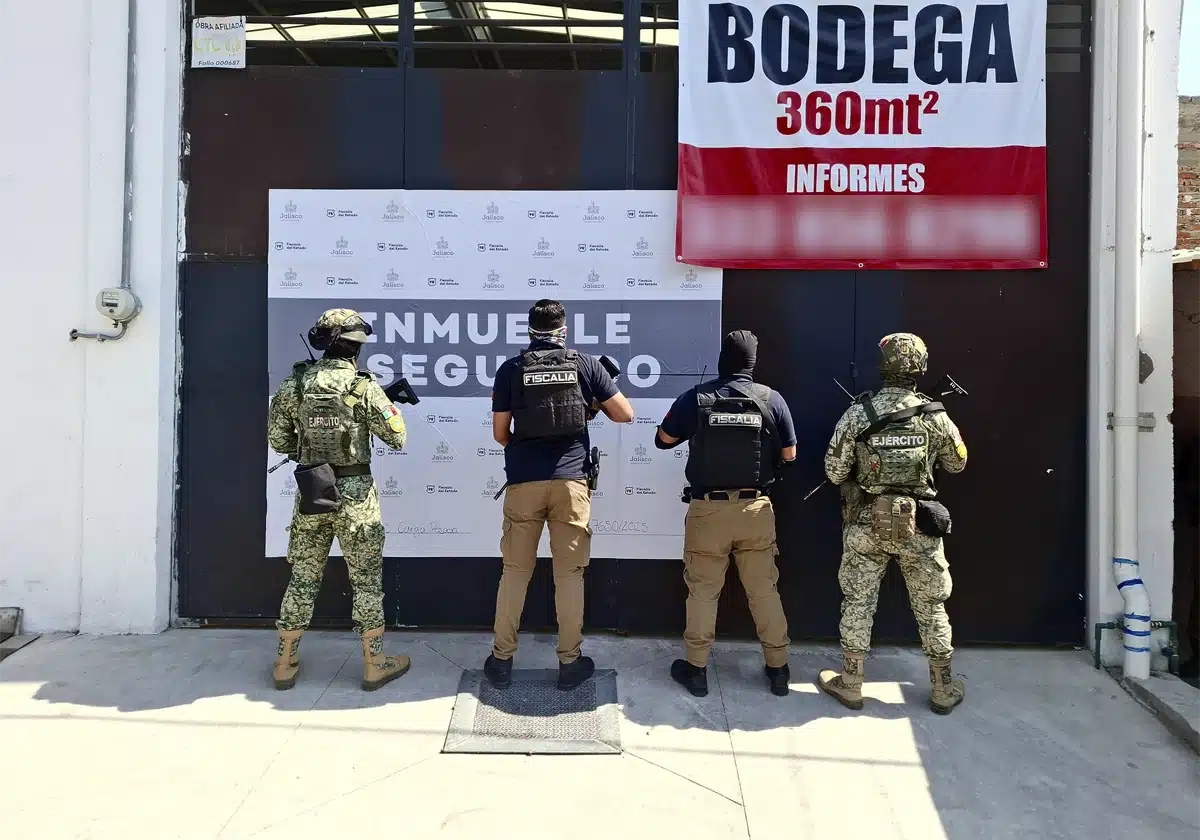Derivado de labores de análisis e inteligencia, se obtuvo información que permitió ubicar un inmueble en la Calle San Miguel, sin número, con letrero “Se renta bodega”, en la colonia El Campesino, municipio de San Pedro Tlaquepaque, donde presuntamente se resguardaban los vehículos y mercancía vinculados al hecho delictivo. Con base en ello, se solicitó la orden judicial ante el Juez Décimo Quinto.