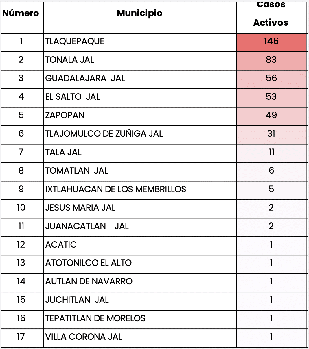 • Tlaquepaque y Tonalá concentran el 50% de los casos activos.