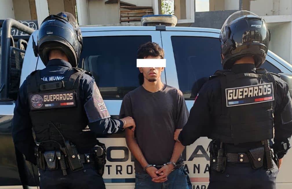 En la Colonia Hacienda Santa Fe, un sujeto arrojó dos bolsas al ver a los oficiales; contenían material granulado y cristalino con características de una sustancia prohibida, con un peso aproximado de 35 gramos.