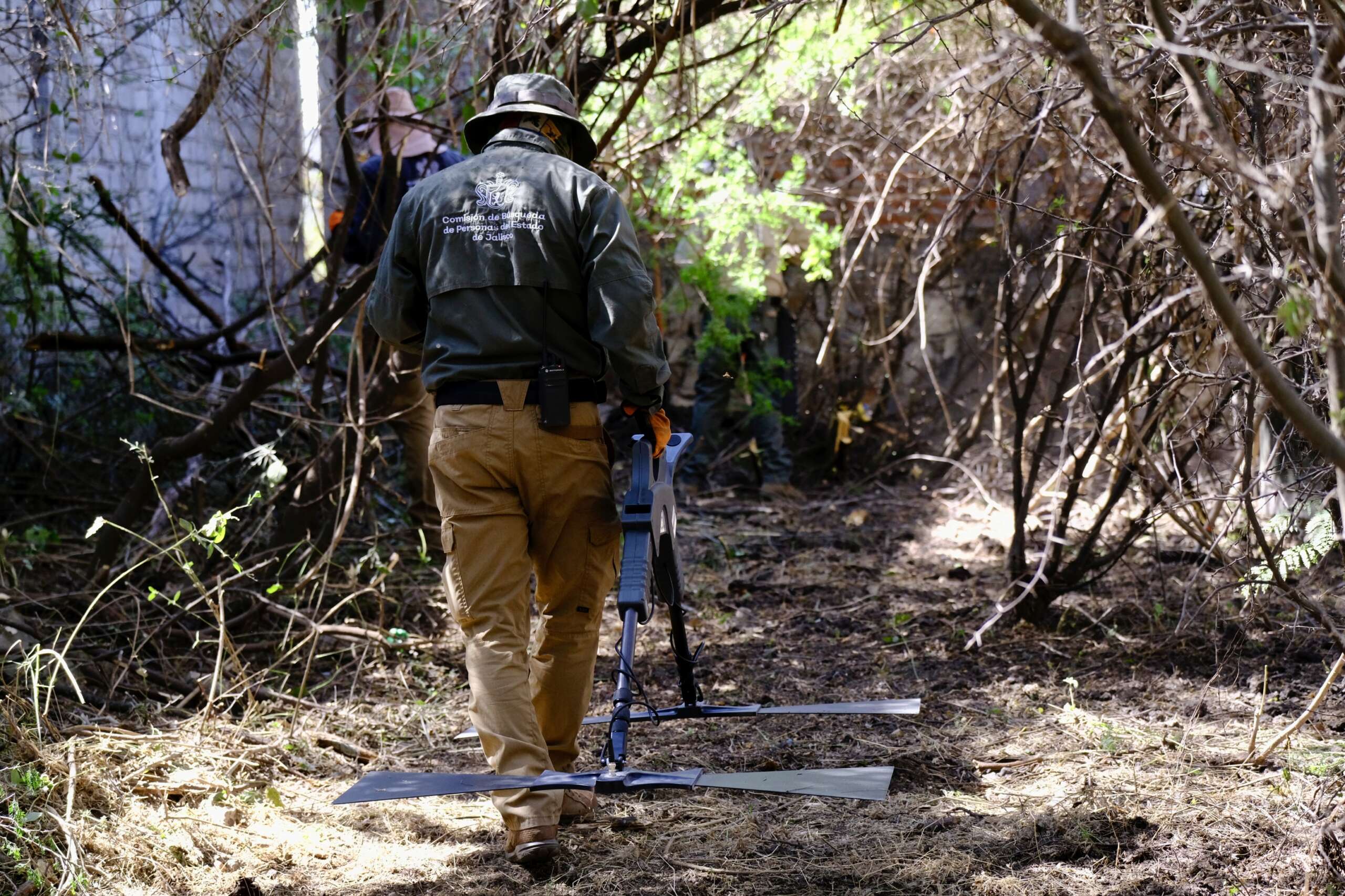 Durante la jornada se llevaron a cabo labores de prospección terrestre, mediante el uso de sonda metálica tipo “T”, así como la intervención del binomio canino del Escuadrón K-9 de la Secretaría de Seguridad del Estado, con el fin de detectar posibles indicios relacionados con la búsqueda.