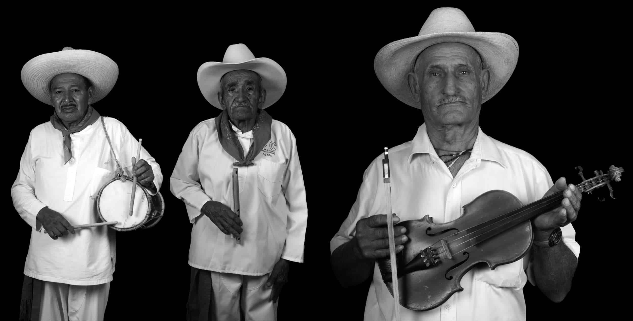 En las imágenes de Aparicio no hay reflectores ni grandes auditorios. Hay fiestas patronales, tianguis y estaciones del transporte público. Hay manos tensas sobre las cuerdas, miradas concentradas, rostros marcados por el sol y la intemperie.