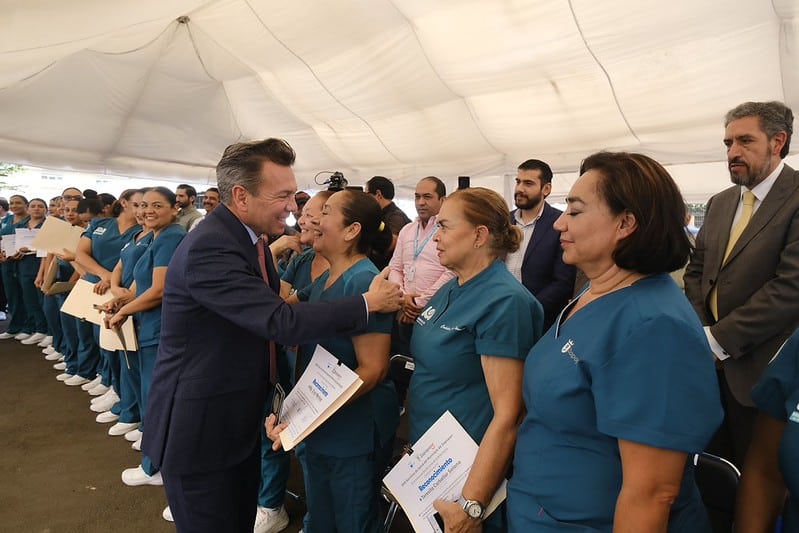 Durante el acto, el mandatario estatal entregó 20 reconocimientos a enfermeras y enfermeros destacados por su trayectoria y desempeño, en reconocimiento a su vocación de servicio y compromiso con la atención de la salud de las y los zapopanos.