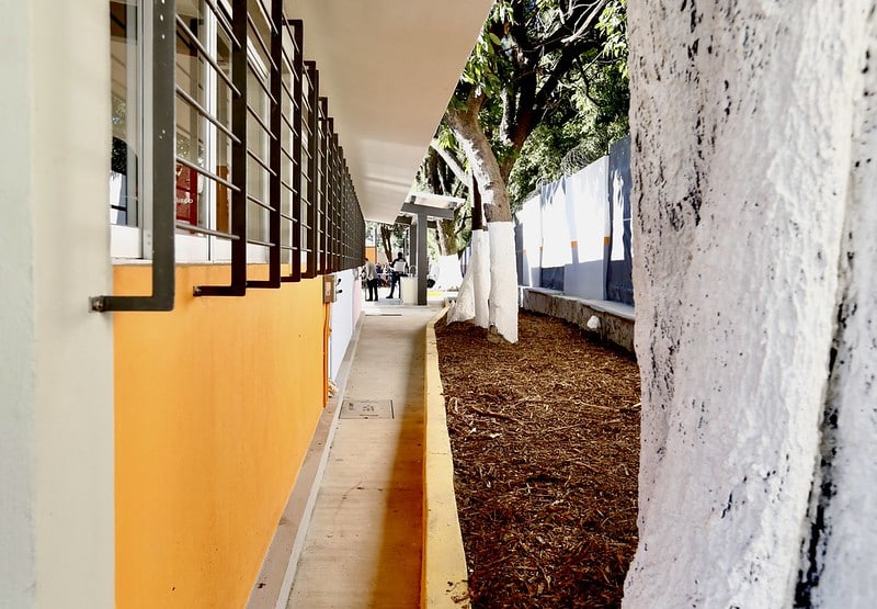 La rehabilitación del plantel incluyó el reforzamiento estructural completo, así como la construcción de un comedor escolar, renovación de sanitarios, red eléctrica, pisos, accesos, herrería, ventanas y puertas, además de pintura general, impermeabilización e instalación de paneles solares, como parte de una estrategia de sustentabilidad.