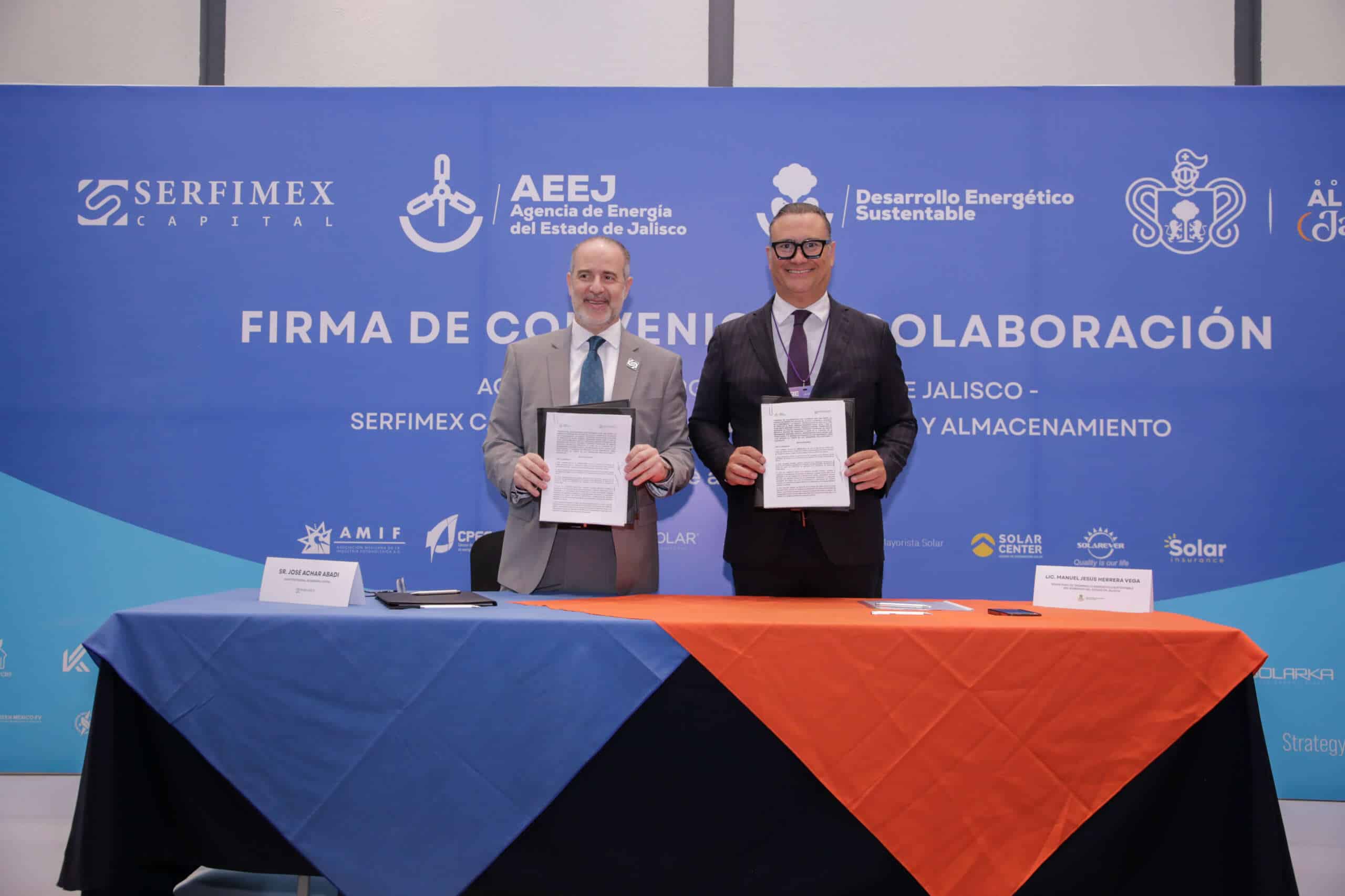 El acuerdo fue firmado por la Agencia de Energía del Estado de Jalisco (AEEJ), la Secretaría de Desarrollo Energético Sustentable (SEDES) y la firma Serfimex Capital, con el objetivo de facilitar el acceso a recursos para la instalación de sistemas de generación distribuida y almacenamiento energético.