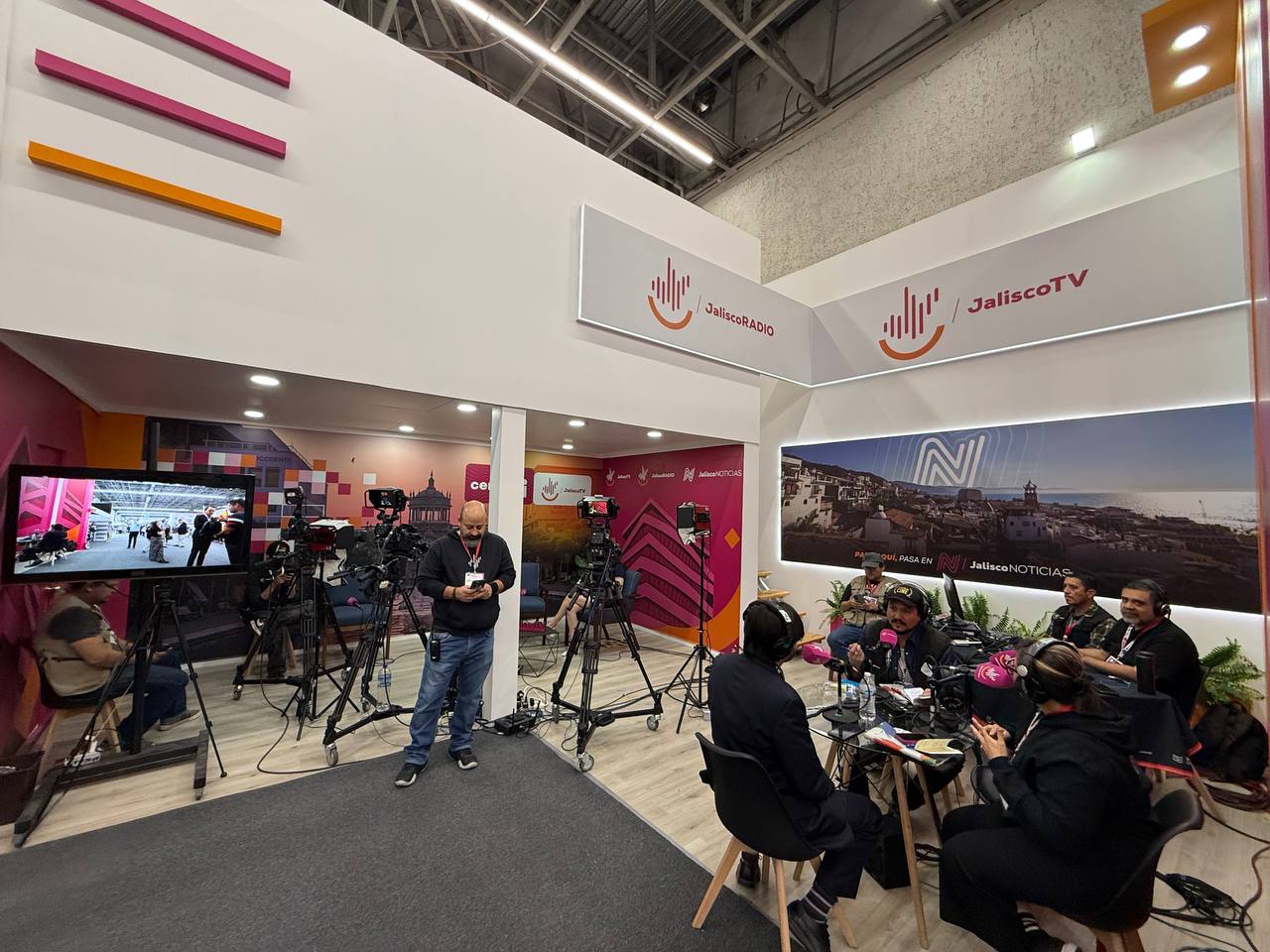 Desde el ámbito estatal, la directora del SJRTV, Gabriela Aguilar, dio inicio a las actividades especiales de Jalisco TV y Jalisco Radio, que estarán activas durante toda la feria desde los stands M5, M6 y M7 del Área Nacional, donde el público podrá disfrutar de transmisiones, contenidos especiales y programación dedicada al universo literario.