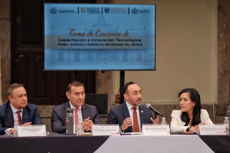 La firma de los convenios se realizó entre el Gobierno estatal y el Poder Judicial del Estado de Jalisco. En representación del gobernador Pablo Lemus Navarro, el secretario general de Gobierno, Salvador Zamora Zamora, subrayó que el fortalecimiento técnico del litigio impacta directamente en la certeza jurídica que reciben las personas.