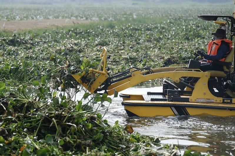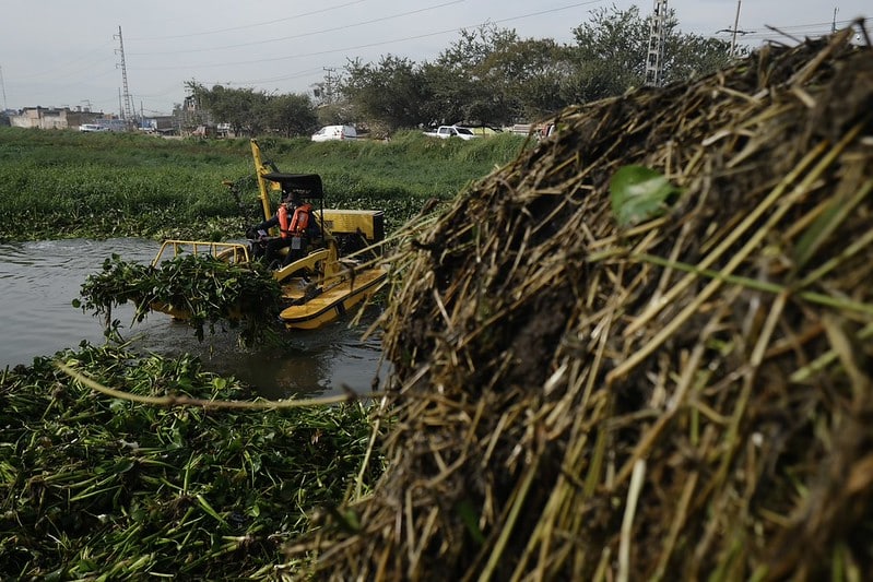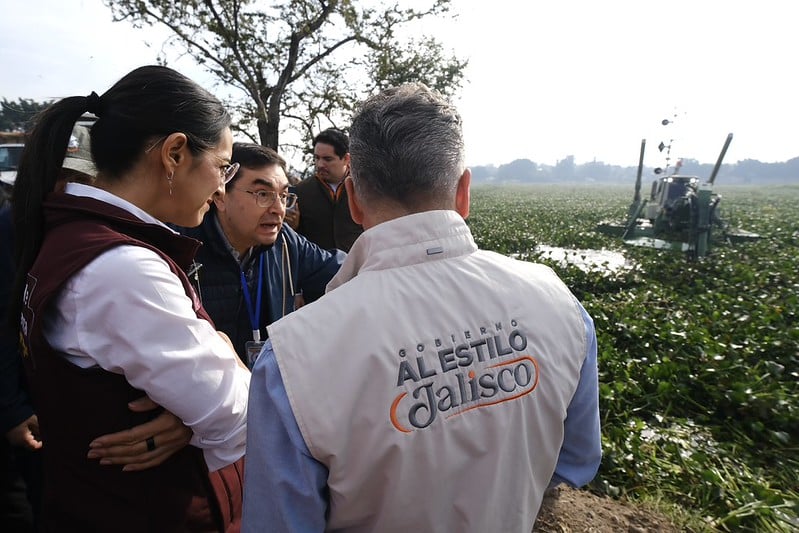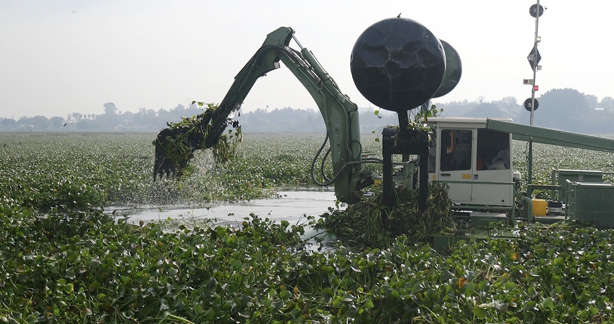 El retiro de maleza acuática robustece el sistema de almacenamiento para el abasto de agua a las y los habitantes del Área Metropolitana de Guadalajara (AMG).