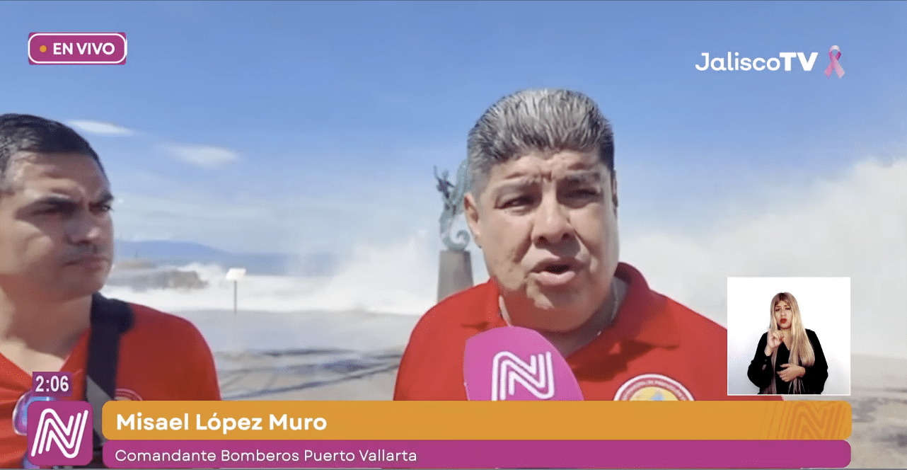Desde el Malecón, epicentro turístico y social de la ciudad, el comandante de Protección Civil y Bomberos de Puerto Vallarta, Misael López Muro, informó que las brigadas municipales mantienen recorridos de supervisión ante el aumento del oleaje.