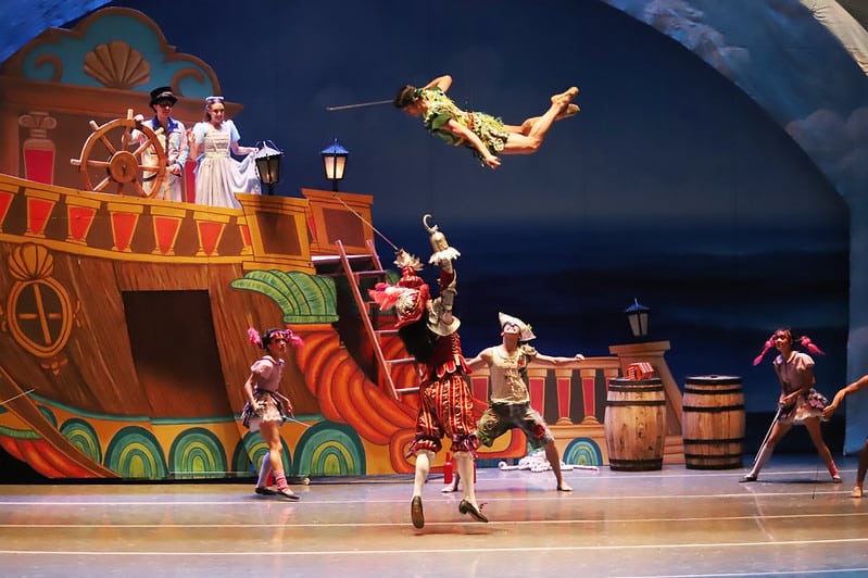 La coreografía plantea contrastes estilísticos, desde secuencias de tango en los enfrentamientos con Garfio hasta pasajes de ballet clásico en los vuelos de los protagonistas, acompañados por arreglos musicales de Carmon DeLeone.