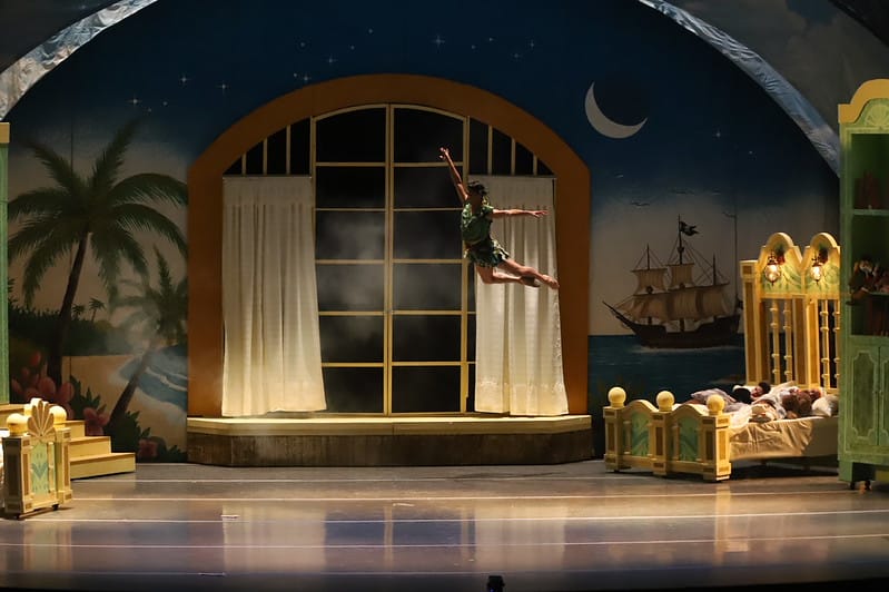 Desde la apertura, el espectáculo apostó por una experiencia inmersiva mediante videomapping, con escenarios que transitan entre selvas, cenotes y paisajes del Caribe mexicano, en una adaptación que traslada la historia original de James Matthew Barrie a la península de Yucatán.