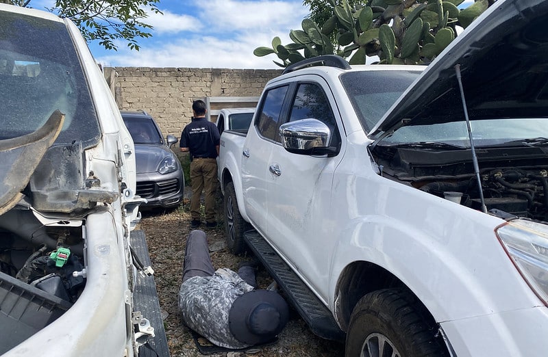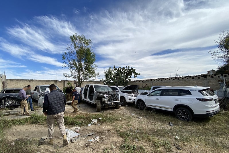El vehículo buscado, un Chirey Tiggo, fue ubicado dentro del inmueble, donde también se encontraban los otros automóviles semidesmantelados y una placa de circulación del estado de Jalisco involucrada en una carpeta de investigación.