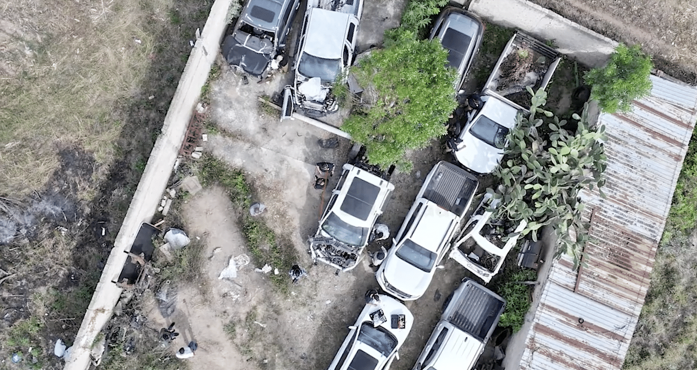 En total, fueron ubicadas diez camionetas —de dos solamente ya el chasis— todas remarcadas en sus números de serie: una Chirey Tiggo con reporte de robo, una Ford F-150 desmantelada, una Nissan Frontier, una Nissan Estacas, una Chevrolet Colorado, una Porsche, una Dodge Ram semidesmantelada, una Acura RDX, y el chasis de una Nissan Frontier y de una Chevrolet Silverado, este último con carpeta de investigación tras su robo denunciado en Lagos de Moreno.