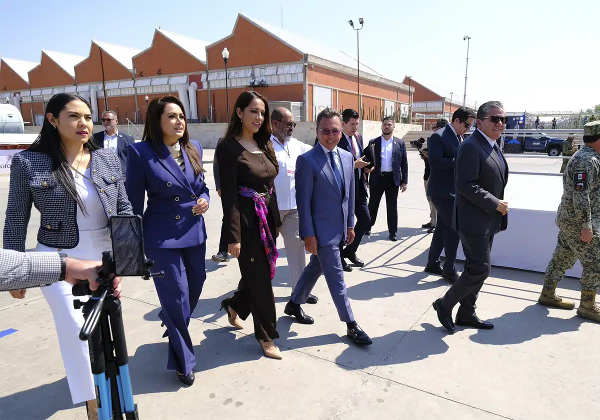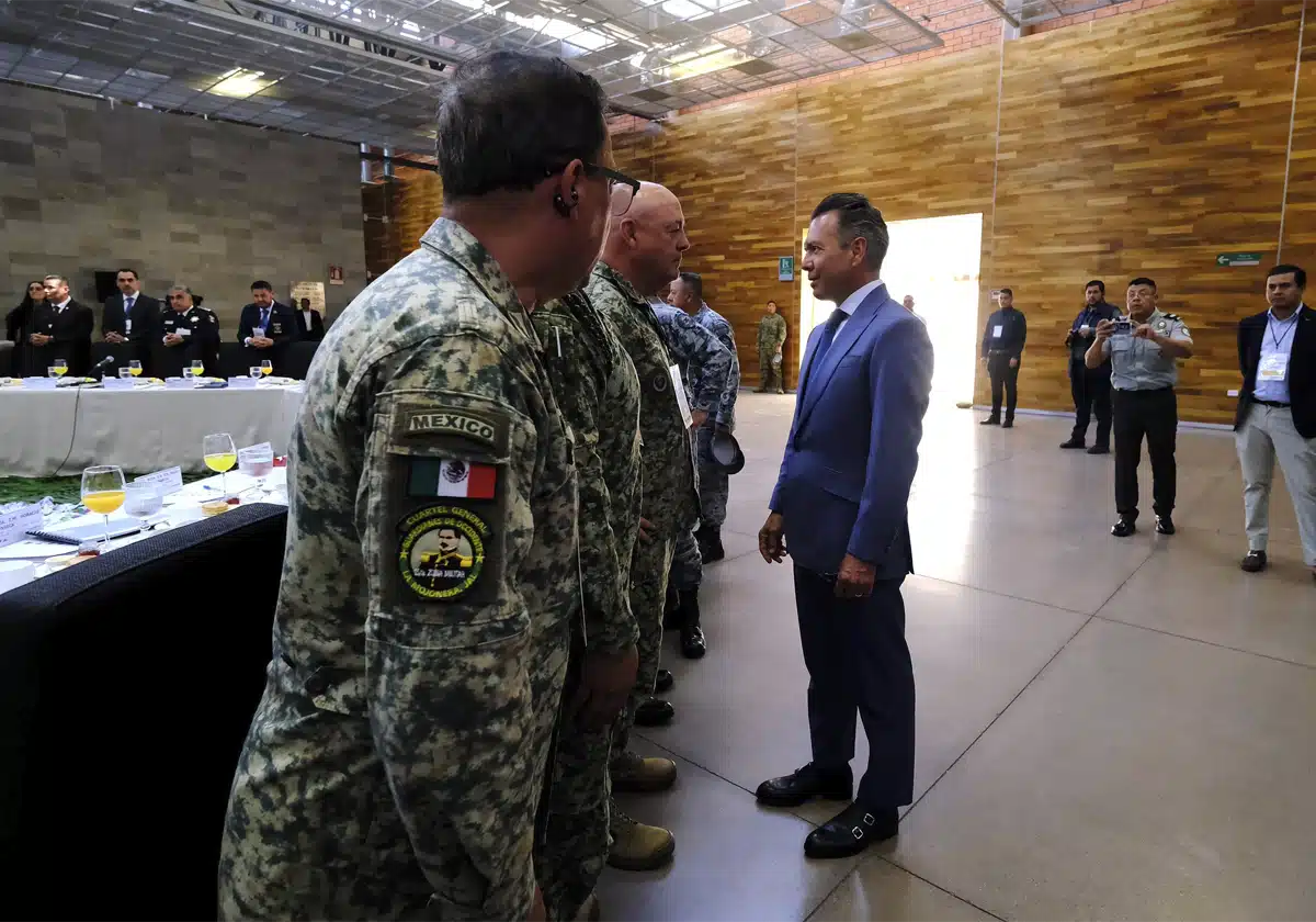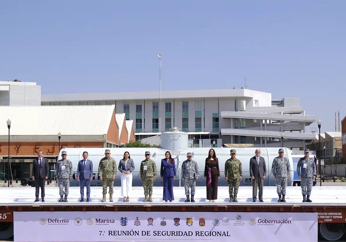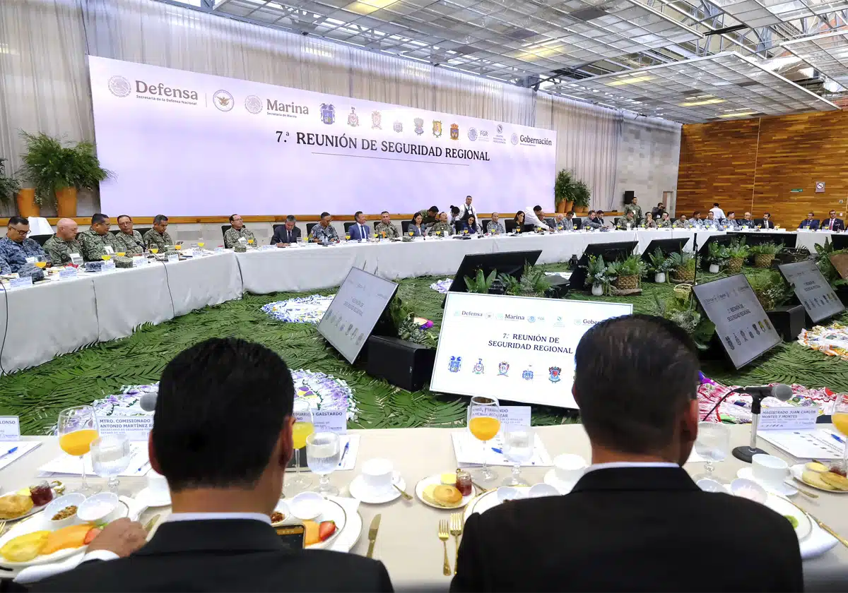 El encuentro reúne a autoridades estatales de la región occidente, entre ellas las gobernadoras y gobernadores, David Monreal Ávila de Zacatecas; María Teresa Jiménez Esquivel de Aguascalientes; Indira Vizcaíno Silva de Colima; Libia Dennise García Muñoz Ledo de Guanajuato; y Miguel Ángel Navarro Quintero de Nayarit; además de representantes de instituciones federales y militares.