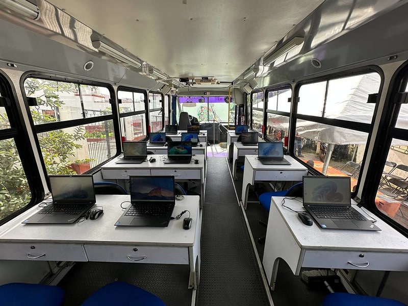 Entre las iniciativas más destacadas figura el programa “Camión Escuela”, un aula móvil equipada con computadoras y conectividad que recorre distintos municipios, empresas y comunidades a través de las Brigadas Yo Jalisco, llevando educación directamente a quienes la necesitan.