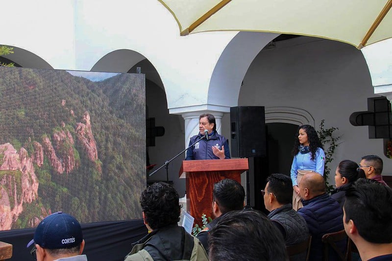 La entrega del Certificado CONANP-643/2025 estuvo a cargo de Pedro Álvarez Icaza, Comisionado de la CONANP, durante un acto realizado en la Casa de la Cultura de Tapalpa, con la presencia de Paola Bauche Petersen, titular de la Secretaría de Medio Ambiente y Desarrollo Territorial (SEMADET), así como autoridades municipales y representantes ambientales de la región.