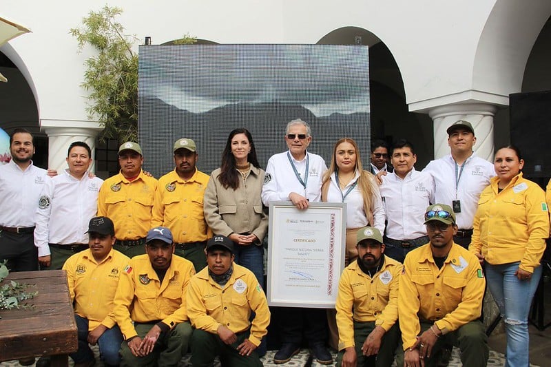 La entrega del Certificado CONANP-643/2025 estuvo a cargo de Pedro Álvarez Icaza, Comisionado de la CONANP, durante un acto realizado en la Casa de la Cultura de Tapalpa, con la presencia de Paola Bauche Petersen, titular de la Secretaría de Medio Ambiente y Desarrollo Territorial (SEMADET), así como autoridades municipales y representantes ambientales de la región.