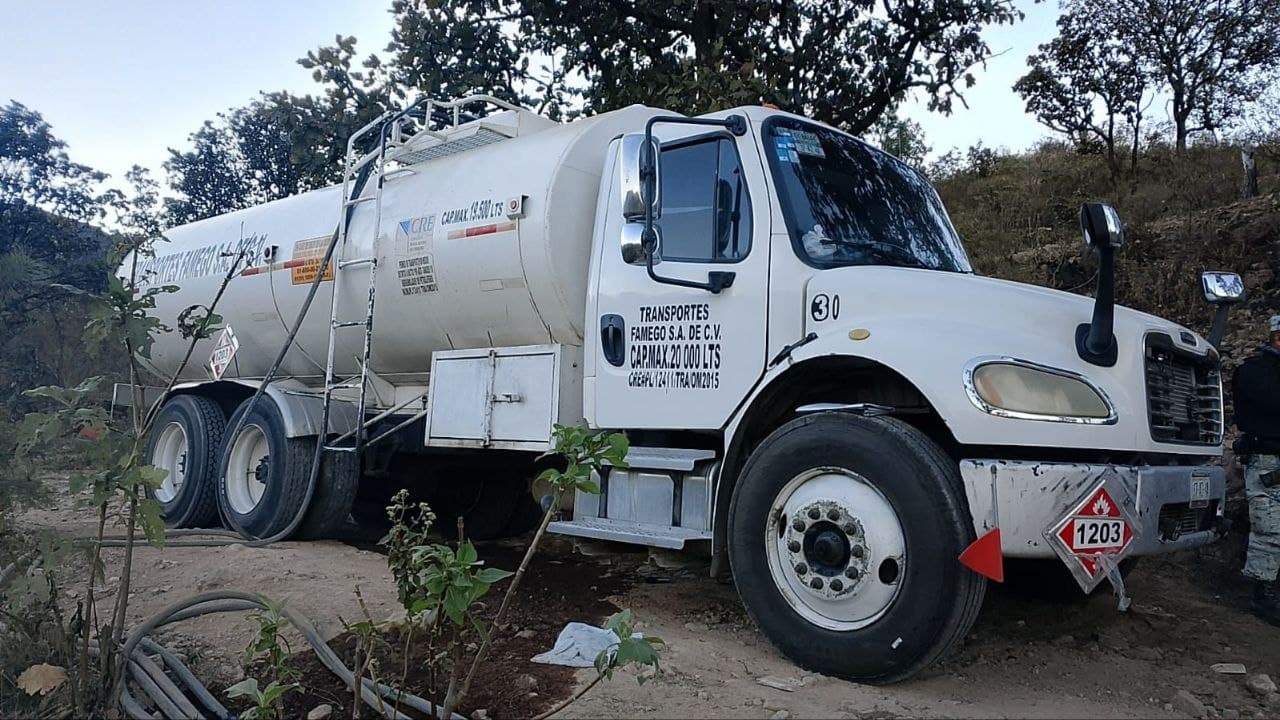 Al inspeccionarlo, los elementos observaron que la unidad estaba conectada mediante mangueras al ducto y cargada a su máxima capacidad: 19 mil 500 litros. A pocos metros fue localizado también un vehículo con caja seca y placas de Michoacán, presuntamente vinculado a la extracción ilegal.