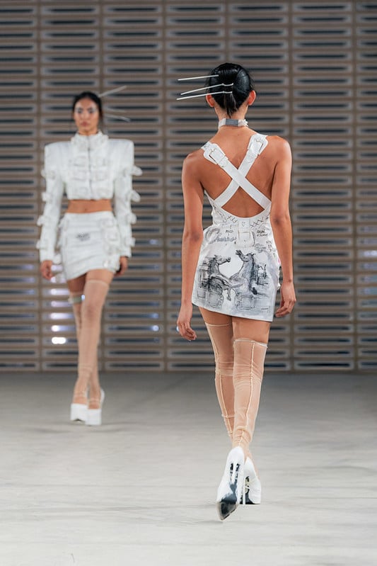 A su vez, creadores como Alfredo Martínez, Abel López y Olmos y Flores reafirmaron el valor de la herencia cultural como elemento diferenciador de la moda nacional. La identidad regional también se reflejó en el debut de Arrre, marca de Alejandro Fernández y Karla Laveaga, con una propuesta inspirada en el estilo vaquero y urbano.