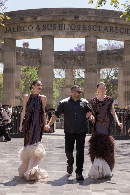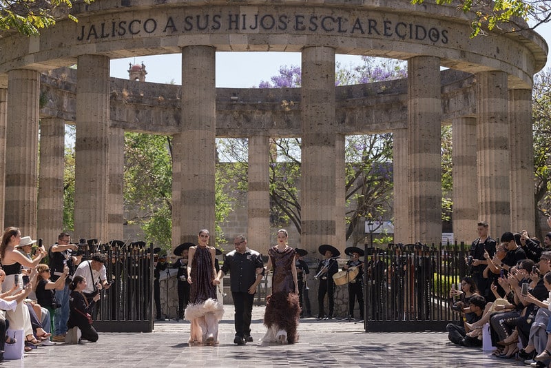 Entre las presentaciones destacadas, estuvo la de Benito Santos quien llevó su colección “12 Sones” a la rotonda de las y los Jaliscienses Ilustres, en una propuesta que integró elementos tradicionales con una visión contemporánea, acompañada por Ximena Sariñana.